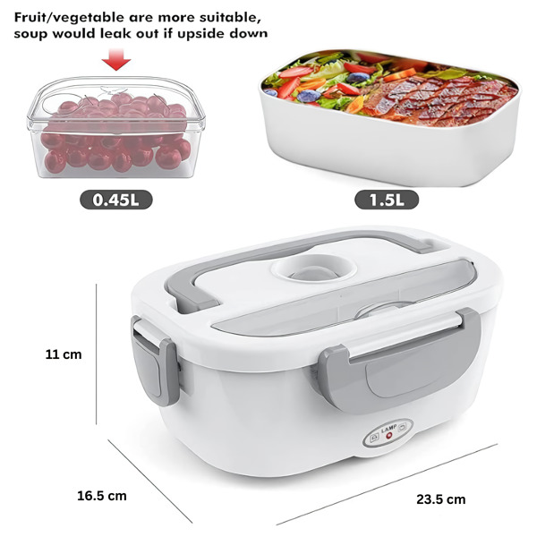 Ova zagrejana posuda za ručak uključuje dva uklonjiva kontejnera od 304 nerđajućeg čelika od 1,5 l i plastični kontejner od 0,45 l koji se mogu koristiti naizmenično.